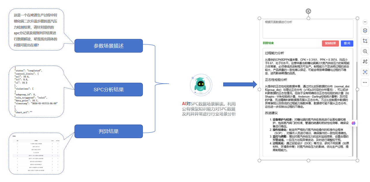行業(yè)知識增強:通過RAG(檢索增強生成)技術,系統(tǒng)將公有模型與行業(yè)私有知識庫結合。例如,在啤酒糖化工藝中,AI自動調(diào)用“蒸汽壓力閥門老化”關聯(lián)規(guī)則,精準定位異常根源。