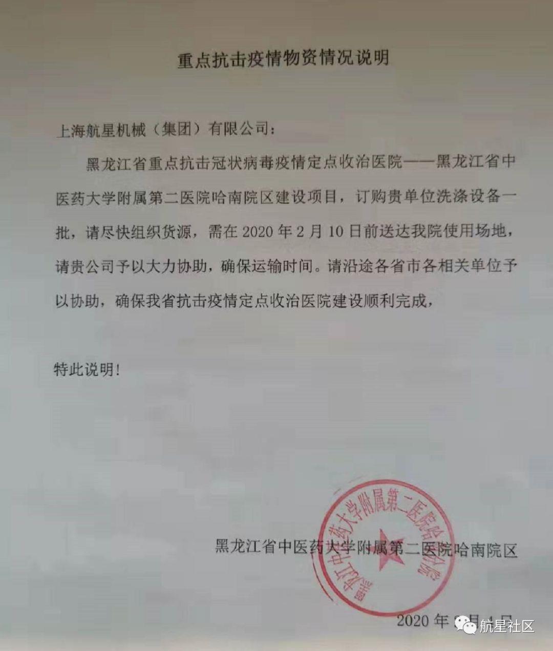 大年初六的早上,被黑龍江省列為重點(diǎn)抗擊疫情的定點(diǎn)收治醫(yī)院,黑龍江省中醫(yī)藥大學(xué)附 屬第二醫(yī)院南區(qū)欲建一洗衣房,急需洗凈度高、有效避免交叉感染和二次污染的隔離式洗脫設(shè)備,向上海航星機(jī)械(集團(tuán))有限公司致電求購(gòu)技術(shù)設(shè)備,航星當(dāng)?shù)刎?fù)責(zé)銷(xiāo)售的劉經(jīng)理不顧疫情傳染的危險(xiǎn),當(dāng)即前往院區(qū)接洽。